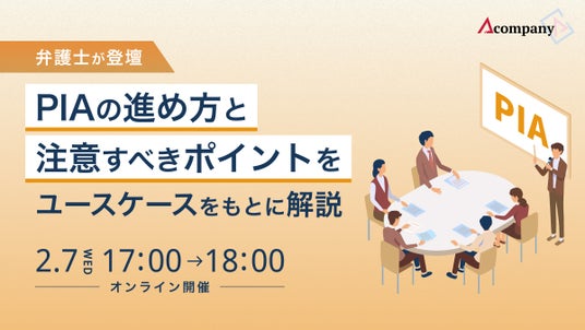 株式会社Acompany(アカンパニー、愛知県名古屋市西区、代表取締役CEO 高橋亮祐、以下Acompany)は、プライバシー影響評価(Privacy Impact Assessment:以下、PIA)の進め方や注意すべきポイントなどを解説するウェビナー「【弁護士が登壇】PIAの進め方と注意すべきポイントをユースケースをもとに解説」を、2月7日(水)17:00-18:00に開催します。
