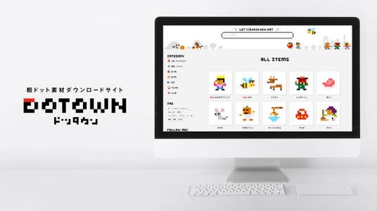 クリエイター集団「前田デザイン室(現:マエデ)」が制作した、粗ドット素材をダウンロードできるサイトです。粗ドットとは、可能な限り低い解像度で、究極に抽象的な表現をしたドット絵を指しています。レトロゲームを想起させる素材の魅力があり、全素材無料ダウンロード・商用利用が可能で、広告表示がない設計となっています。日本のみならず海外でも利用されています。