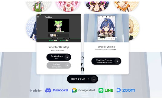 Vme!には、Vme! for Desktop(デスクトップ版)とVme! for Chrome(Chrome拡張版)があり、今日リリースしたVme! for DesktopではZoomやラインなどのビデオ通話アプリにも対応しております。