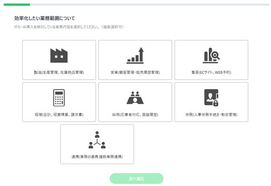 - 表記に従って、改善したい業務や必要な機能を選択