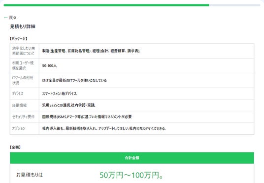【AIが無料で見積り】IT・AIの導入支援サービスをスタート。システム導入の予算をAIが無料でお見積りできるサービスをリリース。3分間の簡単アンケートで業務範囲、必要機能などを入力。