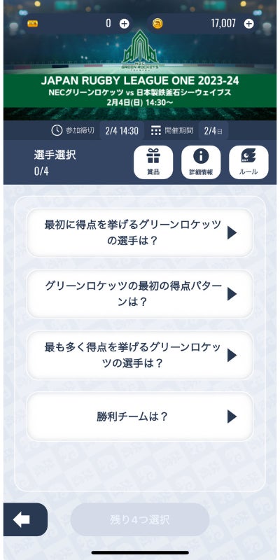 イノベーションの力で新たなスポーツ・エンターテインメントを創造し、まだ見ぬ感動と熱狂を提供するアプリ「なんドラ」を運営する株式会社なんでもドラフト(本社:東京渋谷区、代表:森井啓允)は、2月4日(日)に柏の葉公園総合競技場で開催される、NECグリーンロケッツ(NTTジャパンラグビー リーグワン2023-2024 ディビション2)ホームゲームの試合展開予想企画を開催します。