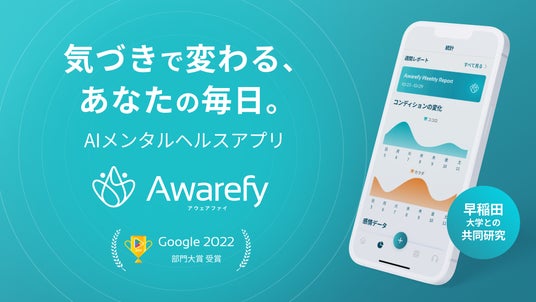 弊社では、心の健康と成長をサポートする AIメンタルヘルスアプリAwarefyを提供しています。