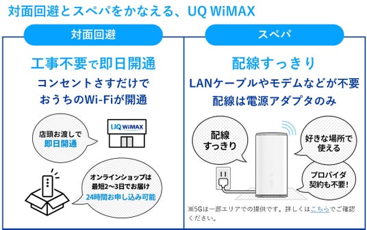 UQ WiMAX「WiMAX +5G」の詳細は公式ホームページをご確認ください。