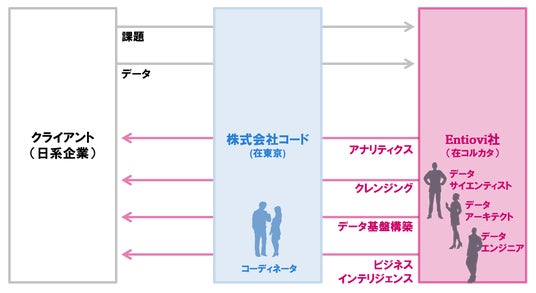 株式会社コード(本社:東京都江東区、代表取締役 金惺潤/以下、「当社」)は、Entiovi Technologies Private Limited(本社:インド ウェストベンガル州、代表 Sanjoy Chatterjee、以下「Entiovi社」)と業務提携に関する覚書(MOU)を締結し、アナリティクス、データサイエンス、データエンジニアリング、データ基盤構築、AI/ML等の分野における日印間ビジネスの開拓・拡大を本格始動しました。