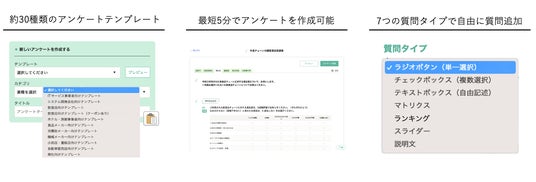 ・テンプレートを利用することで、アンケートの作成時間は最小限で済み、 最短5分でお客様満足度アンケートが完成します。