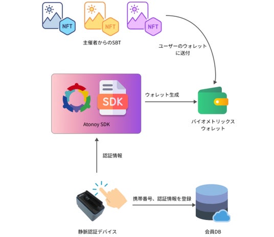 Web3のトークンエコノミーコンサルティングとブロックチェーンのスマートコントラクト開発の株式会社アトノイ(東京都港区、代表取締役:川本栄介、https://atonoy.co )は、株式会社モフィリア(東京都品川区、代表取締役社長:柴田顕、https://www.mofiria.com/ )と共同で、指静脈の生体情報(バイオメトリクス)を活用し、ブロックチェーン上にウォレットアドレスを生成し、NFTなどのトークンを容易に受け取るサービスのPoC(概念実証)を開始しました。