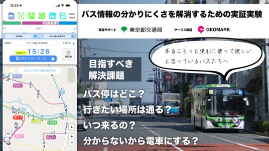 ジオ・マーク株式会社は、オープンデータ化が進むバス情報を実践的に活用し、スマホで充実したバス情報がすぐに確認できるサービスの有用性を検証する実証試験を都営バスにおいて実施します。