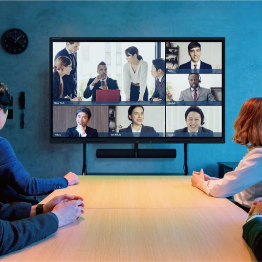 zoom、Google meet 、Teamsなどの主要会議ソフトに対応。電源を入れるだけで、大画面で臨場感のある会議がすぐに行えます。