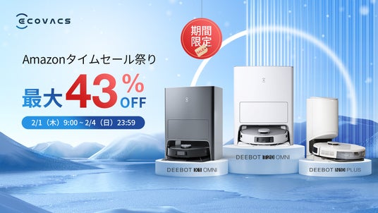 エコバックスジャパン公式Amazonストアでは、2月1日(木)9時から2月4日(日)23時59分までAmazon.co.jpで開催される「タイムセール祭り」において、ロボット掃除機の人気製品が最大43%OFFとなる特別セールを実施致します。