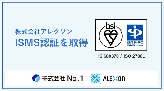株式会社No.1は2018年に取得した情報セキュリティマネジメントシステム(ISMS)の認証に関し、子会社である株式会社アレクソンにおいても新たに登録組織への追加が認められました。