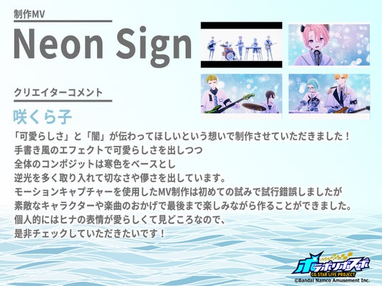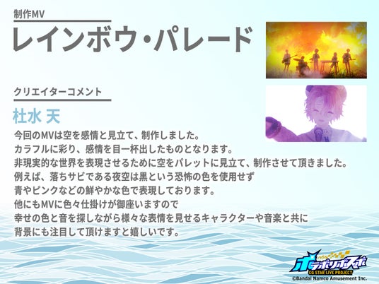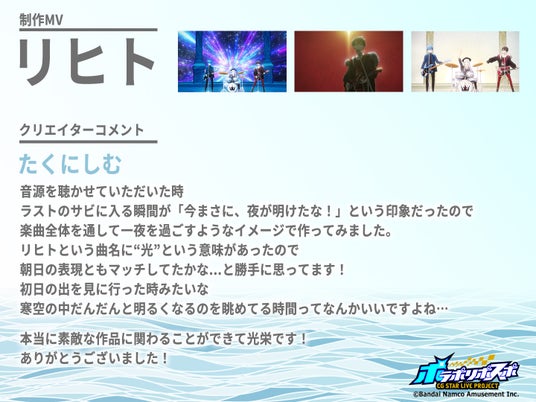 YouTubeの映像コンテンツ(ボイスドラマ・オリジナル楽曲MV)で“物語”を、CGライブやリアルイベントで“体験”を提供する、バンダイナムコアミューズメントが贈るオリジナルIP創出プロジェクト。各分野のプロフェッショナルたちの支えにより、キャラクター・世界観を創造し、世界中のファンへストーリー・音楽・ライブ・イベント・グッズを通して、『創作が与えてくれる感動』と『その尊さ』を発信します。