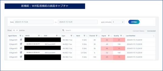 アイビーシー株式会社(本社:東京都中央区、代表取締役社長:加藤 裕之、以下 IBC)は、IBCが開発・販売するシステム情報管理ソフトウェア「 System Answer G3 」(以下 G3)において、2024年2月5日リリースの新バージョンVer.03.29にて、「CX監視オプション」に新たにWindows版エージェントが追加、また、これまでのネットワークパス表示機能・ページロード機能に加え、無線環境の利用状況を可視化し管理できる「Wifi監視機能」が追加されました。 「CX(カスタマーエクスペリエンス)監視オプション」は、IBCが2023年9月にリリースしたG3のオプションで、ユーザー端末からアクセス対象(クラウドサービス等)までの利用者のレスポンス体感を可視化する機能です。これまで、CX監視オプションの対象OSはLinuxのみの対応でしたが、本新バージョンのリリースにより、対象OSをWindowsにも対応したことにより、CX監視オプションのより幅広いシステムへの導入が可能となりました。また、本新バージョンで、CX監視オプションの既存の2機能(※1参照)に加え、各エージェント(ユーザーが実際に使用している端末)から接続可能な無線環境の利用状況を管理できる「Wifi監視機能」も追加されました。