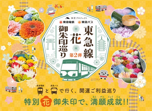 東急線花御朱印巡りは、東急線・東急バス沿線のお寺・神社で「専用御朱印帳」への「特別 花御朱印」の授与と、手水舎をロスフラワー(R)の花で彩る「奉納 花手水」を楽しむことができる御朱印巡りイベントです。第2弾の今回は東急線沿線に加えて東急バス沿線の寺社も参加してさらにパワーアップしています。