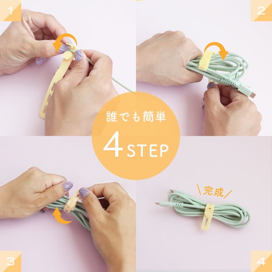 MOTTERUで人気のケーブルバンドに、新色が登場します。Lightningケーブルなどの充電ケーブル、ドライヤーやヘアアイロンのコード、パソコンの配線などをすっきりまとめることができます。また、パンやスナック菓子の袋を閉じたり、ビニール傘の目印にしたりなど、いろいろな使い方ができ、カラーバリエーションも豊富です。