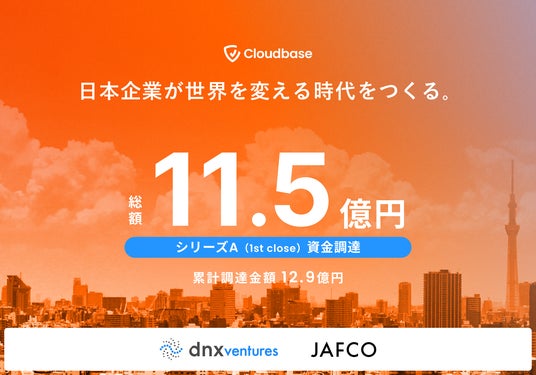 Cloudbase株式会社(本社:東京都港区、代表:岩佐晃也、以下Cloudbase)は、DNX Ventures、ジャフコ グループ株式会社を引受先とする第三者割当増資を実施し、シリーズAラウンド(1st close)において総額11.5億円の資金調達を行ったことをご報告いたします。これにより累計調達額は12.9億円となりました。主な資金の使途として、人材採用、技術・組織開発への投資を予定しております。