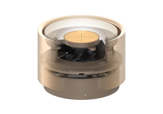 これを具現化するため、アロマプレートを下から温めながら送風するプロトタイプを製作。多くの試作とテストを経て完成したヒーティングシステムによって、熱と風を組み合わせたハイブリッド式のディフューザーへと進化を遂げました。
