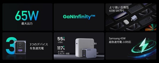 最新GaNInfinityチップ搭載、独自技術で小型化を実現