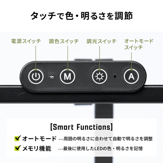 本製品は、クランプで設置できる、デスクでの使用に最適なLEDライトです。