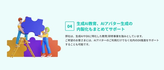 - 生成AI教育、AIアバター生成の内製化もまとめてサポート