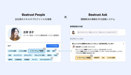 Beatrust は組織内における従業員同士の自律的な協業を促進し「タレントコラボレーション」を実現するプラットフォームです。