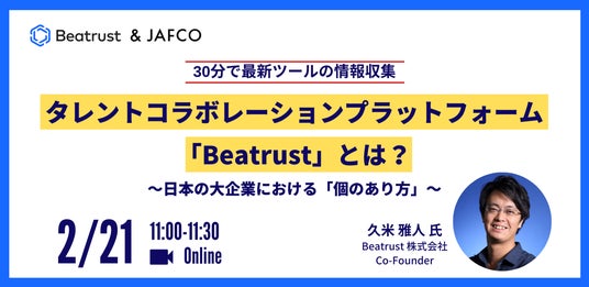 タレントコラボレーションプラットフォームBeatrustを開発提供するビートラスト株式会社(本社:東京都千代田区、代表取締役:原邦雄)は、社員の価値観の変化と企業成長に関するウェビナーを開催します。