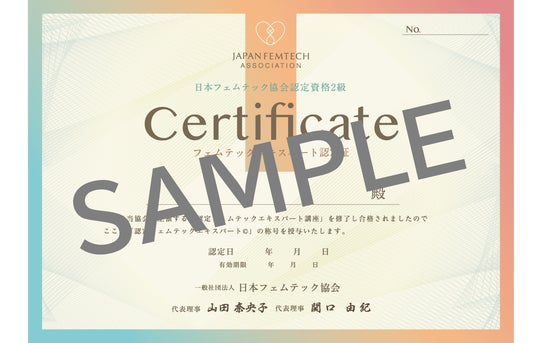 「フェムテック協会認定資格2級」は、医師やジャーナリストらによる講座と、知識の定着を図るための試験の二部構成です。プログラムは全てオンラインで期間中に好きなタイミングで受講・受験可能です。女性ならではのライフステージの体を心の変化、働く女性のメンタルケア、フェムテックの基礎といった知識の定着を図るとともに、合格後は「認定フェムテックエキスパート」の称号と合格証を得ることができます。