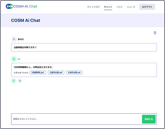 AI・IoTの力で製造業のDXを推進するスタートアップ、株式会社コズム(本社:東京都品川区、代表取締役:橋本優希、以下「コズム」)は、2024年2月9日(金)より、社内FAQとして活用することで問い合わせ工数を大幅に削減する社内専用AI Chatシステム「COSM AI Chat」の提供を開始いたします。