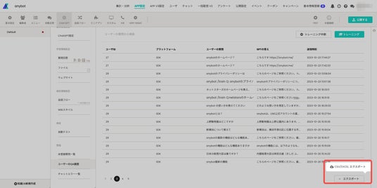 2.右下の[エクスポート]ボタンをクリックすると履歴一覧をダウンロードします。