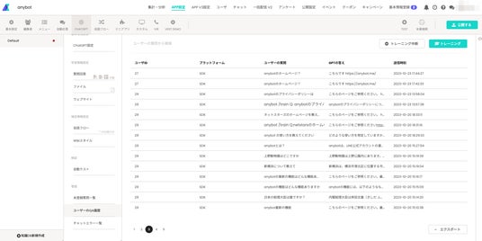 1.「anybotの管理画面」>「APP設定」>「ChatGTP」>「管理」>[ユーザーのQA履歴]