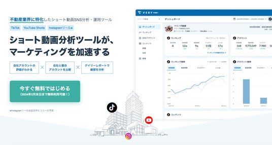 不動産業界に特化したSNSショート動画分析・運用ツール「VERY不動産β」をリリース