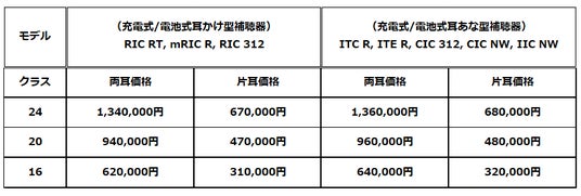 *上記は、補聴器本体の希望小売価格(非課税)です。充電タイプは、専用充電器(17,600円・税込み)が別途必要になります。