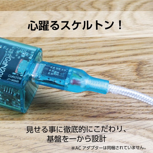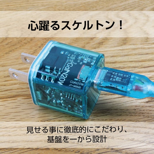 平成の世に現れ一世を風靡したスケルトンデザイン。令和の世にスマートフォンやタブレットなどのガジェットの充電に欠かせないACアダプタとしてよみがえりました。カラーは「ブルーベリー」「グレープ」「タンジェリン」「ライム」「ラズベリー」のポップな5色をご用意。