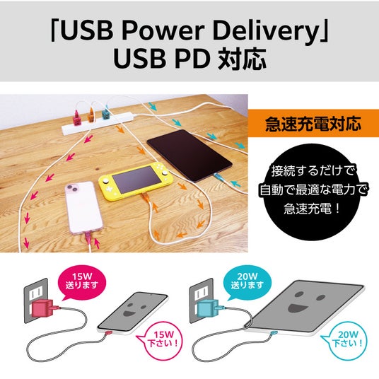 USB PD 20W対応小型軽量ACアダプタ