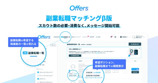 Offers、新しい転職の形を提案する「副業転職マッチング」機能β版をリリース