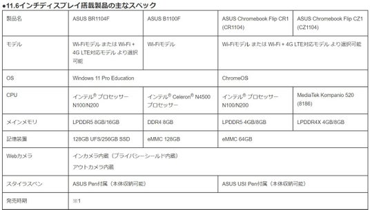ASUS BR1104Fの製品情報:https://www.asus.com/laptops/for-students/br-series/asus-br1104f/(グローバル版製品ページ)