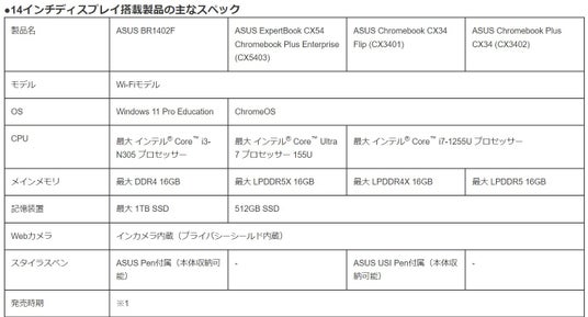 ASUS ExpertBook CX54 Chromebook Plus Enterprise (CX5403)の製品情報:https://www.asus.com/laptops/for-work/chromebook/asus-expertbook-cx54-chromebook-plus-enterprise-cx5403/(グローバル版製品ページ)