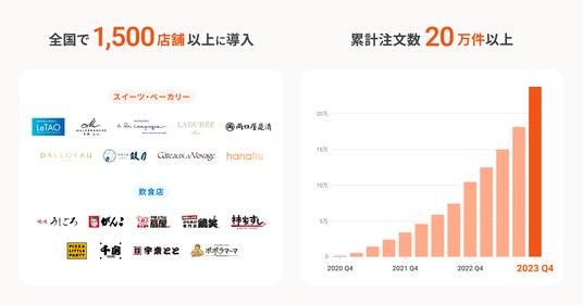 現在全国1,500店舗以上で導入されており、これまでの累計注文回数は20万件を超えております。(2024年1月末日時点)