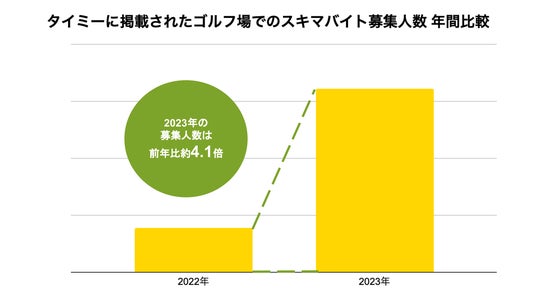 2023年のタイミー上のゴルフ場スキマバイト募集人数は前年比約4.1倍に