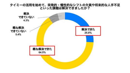 約90%が「タイミーが人手不足等の課題解決に貢献している」と回答