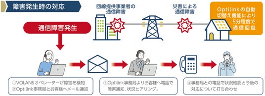 また、同社が提供する「駆けつけサービス」では、Optilink対応範囲外で通信障害が起きた場合にも「とりあえずの相談」が可能です。同社の全国の拠点からスタッフが現地に駆けつけ、原因・復旧方法を調査します。システムがわかりにくい通信業界において、「お客様をたらい回しにしない」ための独自サービスです。