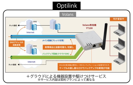 福岡市で情報通信分野におけるCRM支援やセールスプロモーションを行うグラウド株式会社 (本社:福岡市博多区店屋町8番17号 / 代表取締役:白石 浩之 / 以下:同社)は、2024年2月14日、新たに設定する必要はなくケーブルを既存ルータに「挿すだけ」で、NTTドコモやKDDI、ソフトバンク、楽天の4キャリアで光回線の自動バックアップが可能な新サービス「Optilink(オプティリンク)」の提供を開始しました(電気通信事業 届出番号:H-05-01889) 。契約している光回線に障害が発生した場合に、Optilinkが接続可能な4キャリアからその時最も回線状況のよいモバイル回線に自動で切り替えることで、回線障害の影響を最小限に抑えることができます。また、 Optilinkの対応範囲外で障害が起きて通信に不具合が発生した場合にも、現地で原因や復旧方法を調査しフォローする同社独自の「駆けつけサービス」を組み込んだプランもあり、ただ機器を納品するのではない「通信環境を守る体制」を提供します。