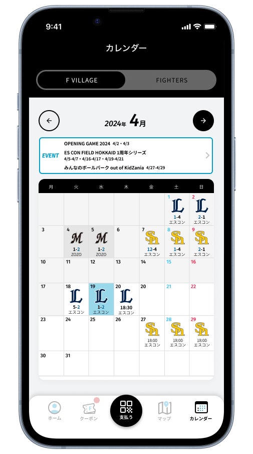 北海道ボールパークFビレッジ公式アプリ 大型アップデート版を近日公開!ログインボーナスやカレンダー機能が登場