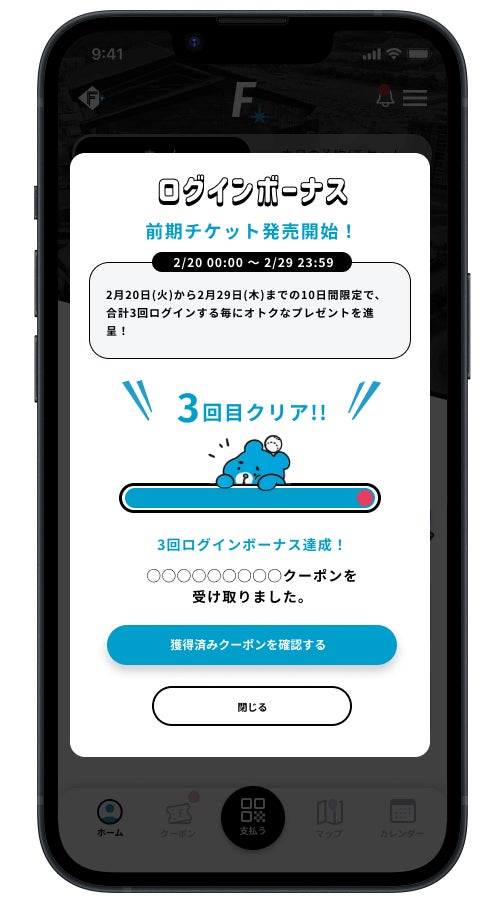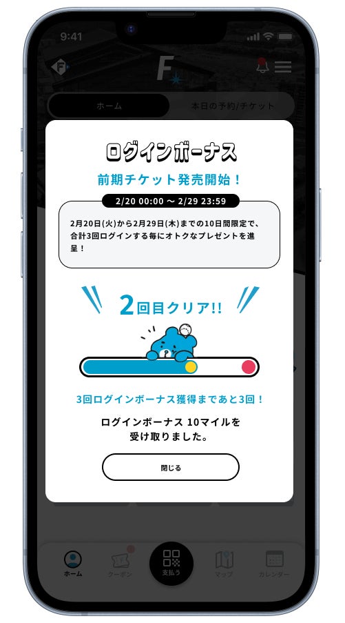 前期チケット販売が始まる2月20日(火)からログインボーナスを配布。新機能も鋭意開発中です。ぜひFビレッジ公式アプリを手にとってお楽しみください。