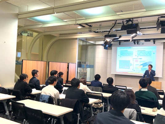 東証の安藤様から学ぶ、「10 代・ 20 代から知っておきたい資産形成のイロハ」講義の様子。