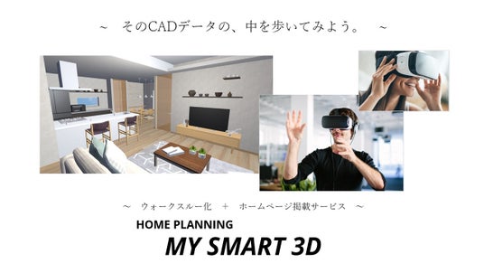 https://www.homeplanning1000.co.jp/mysmart3d建売・分譲住宅の販売のためにCADで仕上げた高精細なパースを物件ページに掲載するということは一般的になってきました。しかし、これをさらに3D化するには新たに3D CADデータを描画するコストや手間もあり、個別の建売・分譲物件等でそこまでコストや手間がかけられないという実情もありました。「MY SMART 3D」は、住宅会社が既に作成しているCADデータをそのままウォークスルーできるデータへコンバートし、用意された専用ホームページに掲載するサービスです。