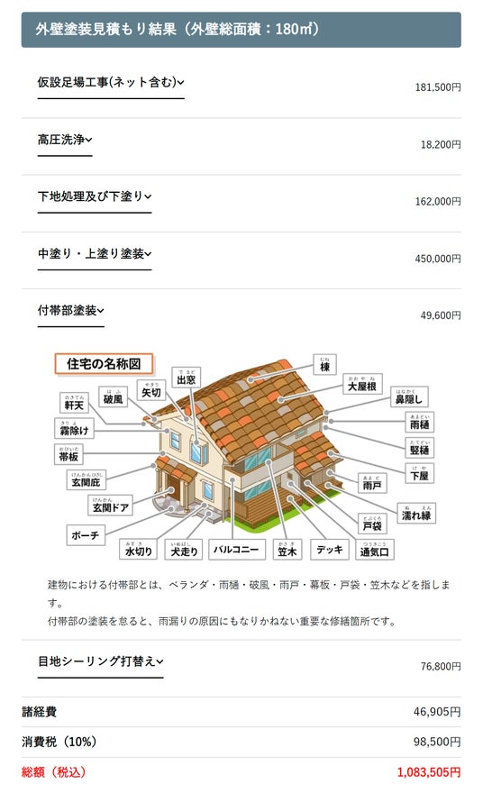 相場わかるくんは、外壁塗装の見積もり価格を最新相場で自動計算してくれるシミュレーションツールです。