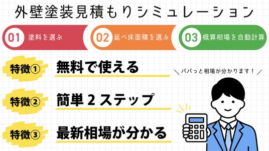 外壁塗装のポータルサイト【はじめての外壁塗装】を運営する株式会社かるかもは、昨今の外壁塗装価格高騰を反映した最新相場の見積もり価格を簡単に確認できるシミュレーションツールを公開しました。