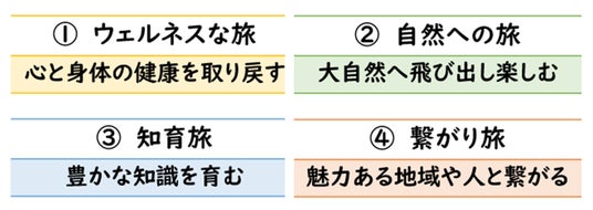 当協議会では、北海道駒ケ岳周辺の滞在テーマについて、コロナ期を境に変容した旅行者ニーズを参考に以下の「テーマ性」を重視し、3町への周遊を促しています。