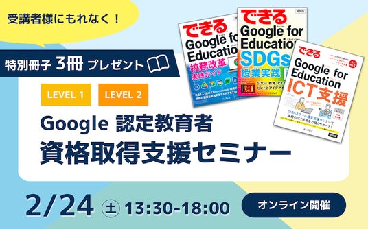 株式会社ストリートスマート(所在地:大阪府大阪市北区、代表取締役社長:森田 竜次、以下:ストリートスマート)が開催し、毎月参加者の方々からご好評いただいている Google 認定教育者 資格取得支援セミナー。受講者様限定で、大人気「できる」シリーズの特別冊子を”3冊セット”でプレゼントすることが決定いたしました!